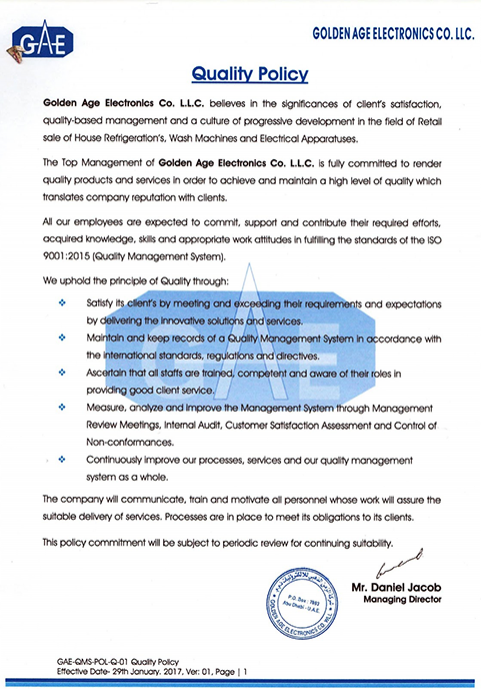 Golden Age Electronics is headquartered in the United Arab Emirates (“UAE”) and recently celebrated its 25th anniversary. We are one of the leading Electronics and Home Appliance suppliers, located in the heart of Abu Dhabi on Electra Street, and have been serving our valued customers since 1992. In addition, we have our own service team to provide after-sales assistance for all Electronics, Home Appliances, and all major brands of Air Conditioners.